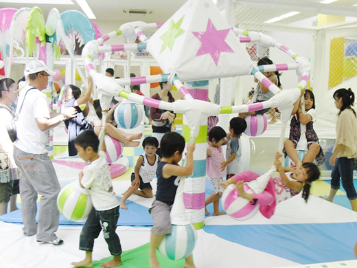 The SKY RIDER is an interactive amusement element designed for children that offers them the ability to use cognitive motor skills to interact with slowly rotating, tilted device while either grapsing or riding on the hanging round seats, all while enjoying the interactivity amongst each other. In addition, children also have the ability to proceed at their own pace, as the unit is not timed. The device is manufactured of high quality materials and also has ample padding to reduce the risk of injuries.